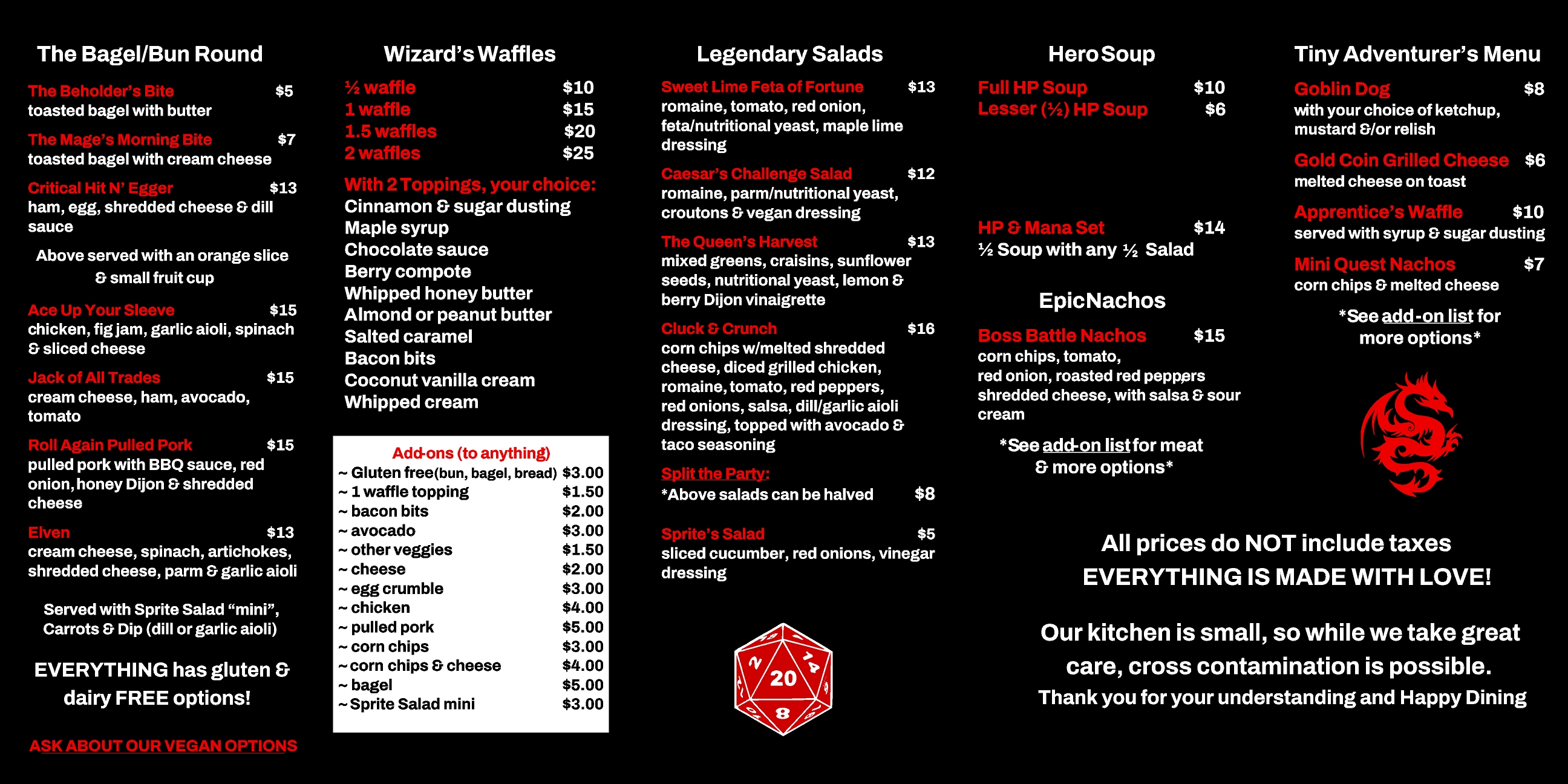 Links to our full menu can be found here